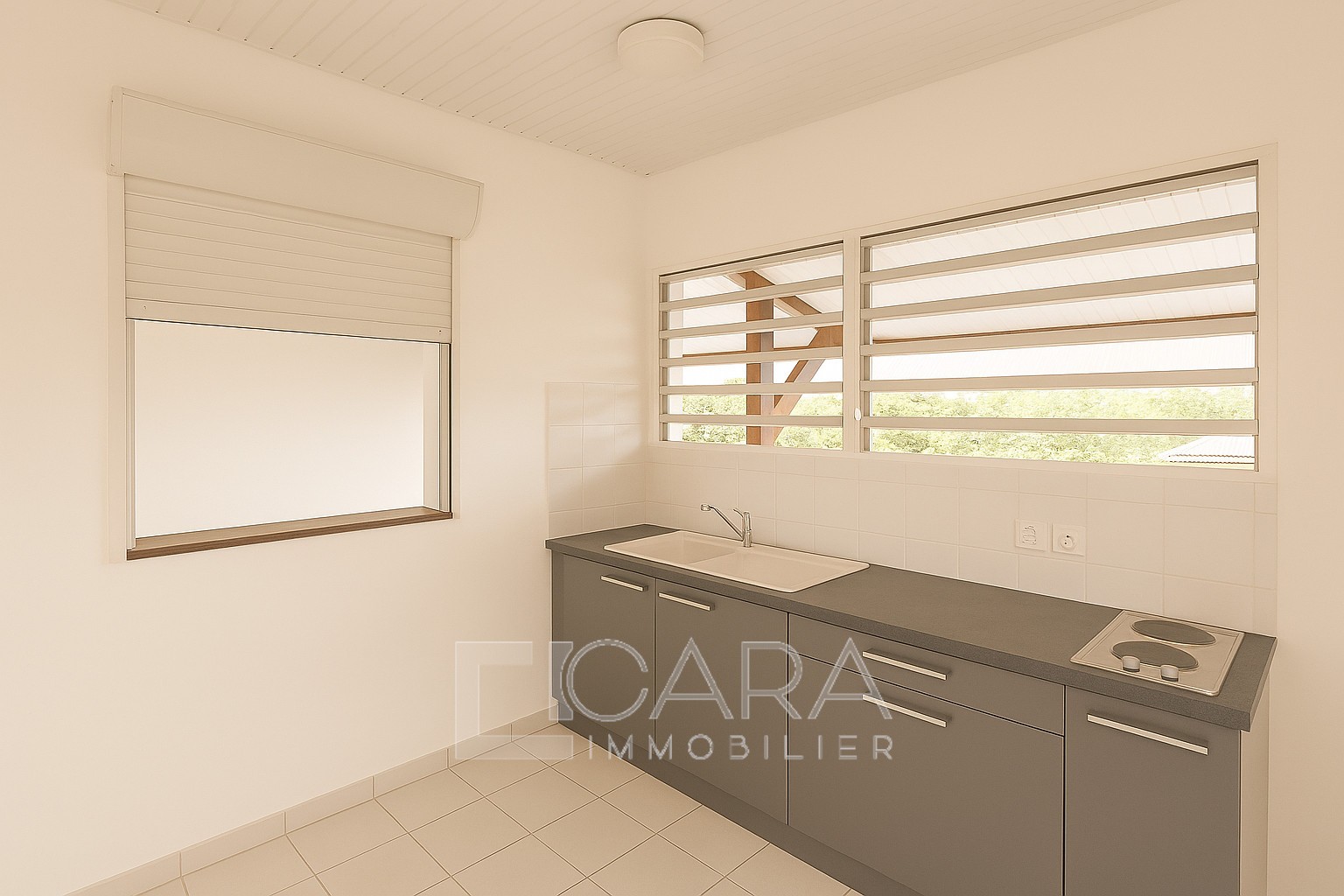 Situé face au rectorat de Cayenne, au sein de la résidence Clos d’ISTYA, cet appartement de type T2 bénéficie d’un emplacement recherché, proche des administrations, des commodités et des axes principaux. D’une surface habitable de 46,56 m², le logement se compose d’un séjour lumineux, d’une cuisine, d’une chambre, d’une salle d’eau, d’un dégagement, ainsi que d’une varangue offrant un espace extérieur agréable. Une terrasse de 11,59 m² vient compléter ce bien, idéale pour profiter de l’extérieur au quotidien. Deux places de parking privatives numérotées 62 et 32 sont incluses.