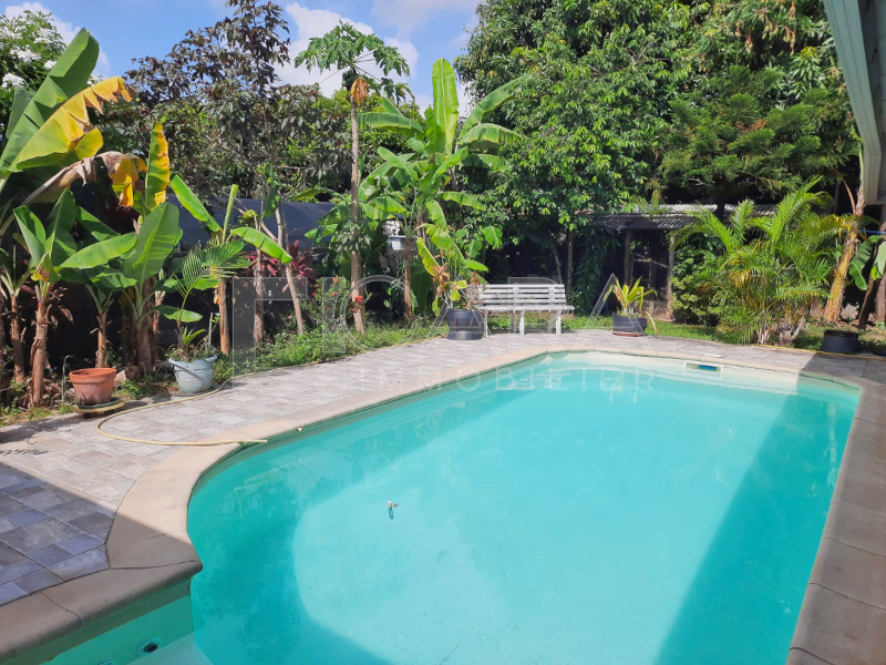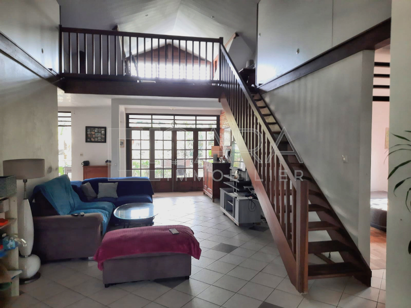 Située dans un quartier résidentiel une maison de type T5 avec piscine Elle comprend, un séjour- salle à manger, une cuisine US aménagée et équipée, une double buanderie, un dégagement, trois chambres climatisées, une salle d'eau, un WC, un bureau, une mezzanine Double terrasses dont une avec cuisine extérieure Deux portails dont un électrique, un garage ouvert, un atelier, un double bureau de 49 m² avec salle de douche et WC Jardin arboré