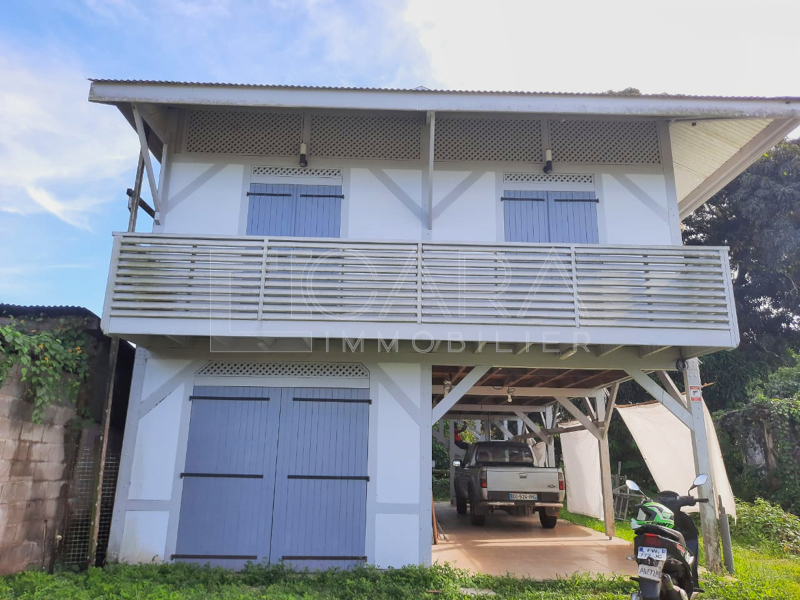 Une maison en bois de type T4 duplex comprenant : - au rez-de-chaussée : une pièce principale à aménager - à l'étage : un séjour, une cuisine aménagée, deux chambres ventilateur et placard, une salle d'eau, un WC, un espace de rangement, une terrasse et un escalier avec des combles à aménager. Un abri voiture
